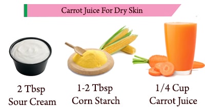 Carrot juice contains plenty of vitamin A which increases your skin tone, reduces wrinkles and pigmentation. The lactic acid present in the sour cream removes dead skin cells. It makes your skin retain moisture. Corn starch can help soothe irritated skin. It helps to remove sunburn.